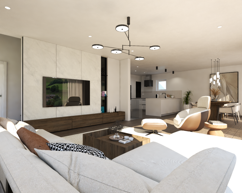 6 1/2-Zimmer. Die attrakiven Einfamilienhäuser liegen am Rande des Quariers und bieten einen wunderbare Aussicht auf das Dorf Schwarzenberg. Die Grundrisse sind grosszügig gestaltet und der offene Wohn-, Ess- und Kochbereich bilden das Herzstück im Erdgeschoss. Durch die grossen Verglasungen fliesst viel Licht in das Innere. Vom Wohn- und Essbereich gelangt man direkt auf den Sitzplatz, an welchen eine schöne Rasenfläche grenzt. Der Hauptzugang befindet sich im Untergeschoss